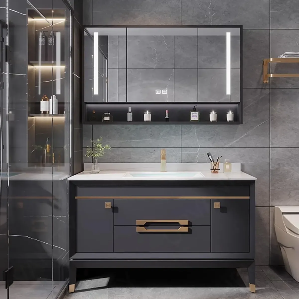 Modern Bath Vanity Set, Gray, Gold Accents, 40"- 48", Single, Freestanding, Smart LED Mirror, Rear Cabinet