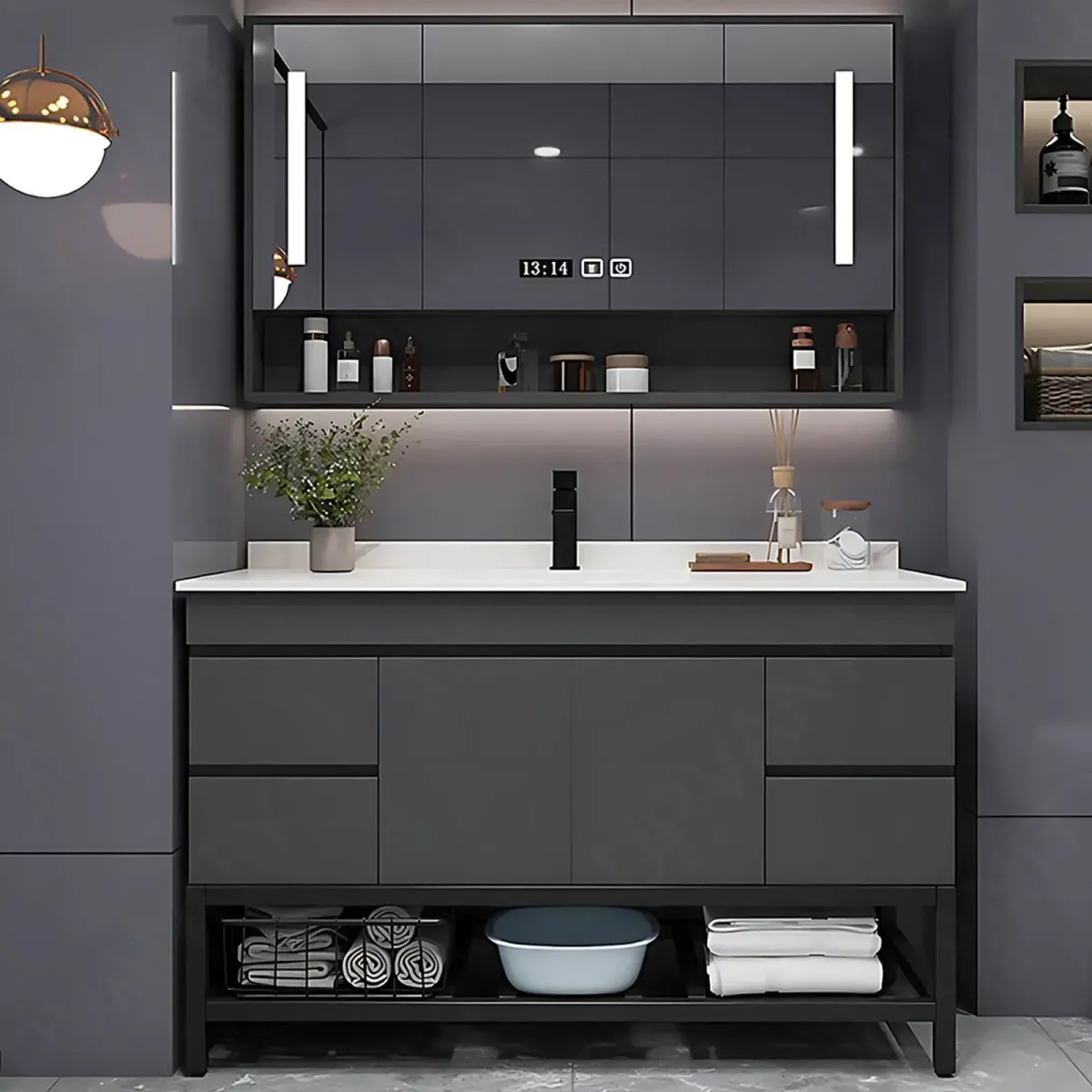 Modern Bath Vanity Set, Gray, Open Storage, 24"- 48", Single, Freestanding, Smart LED Mirror, Rear Cabinet